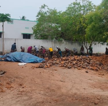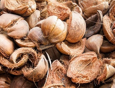 Versatile coconut husk suitable for landscaping, crafts, and biodegradable products.